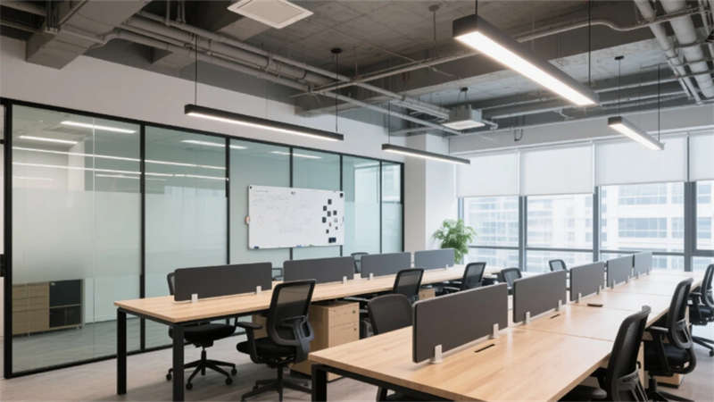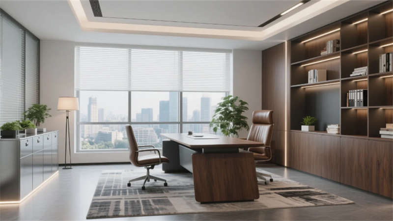 從前臺(tái)懸浮木紋臺(tái)面的企業(yè)標(biāo)識(shí),到開(kāi)放式工位可變的模塊化組合,空間始終保持著“未完成”的進(jìn)化基因。頭腦風(fēng)暴區(qū)的可書(shū)寫(xiě)玻璃墻記錄著思維軌跡,階梯培訓(xùn)區(qū)的滑軌電源系統(tǒng)隨需求生長(zhǎng),智能會(huì)議室霧化玻璃在透明與私密間自由切換,專注電話艙的磨砂質(zhì)感包裹著獨(dú)立思考的靜謐。高管辦公室的皮質(zhì)座椅與垂直線條燈帶,隱喻著決策的柔韌與果決,而咖啡區(qū)黑板墻的手繪痕跡,則讓機(jī)械齒輪般的空間有了呼吸的節(jié)奏。