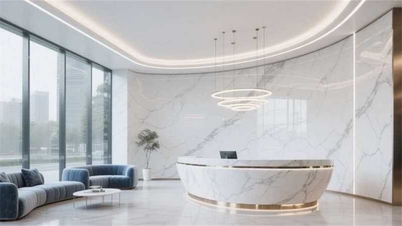 這座律師事務(wù)所空間以當(dāng)代律政文化為脈絡(luò),將專業(yè)精神注入設(shè)計基因?;野谆{(diào)中跳躍的深海藍(lán),如法典的嚴(yán)謹(jǐn)與思維的靈動交織,爵士白大理石與香檳金屬線條勾勒出輕奢質(zhì)感,橡木飾面則為理性空間注入人文溫度。