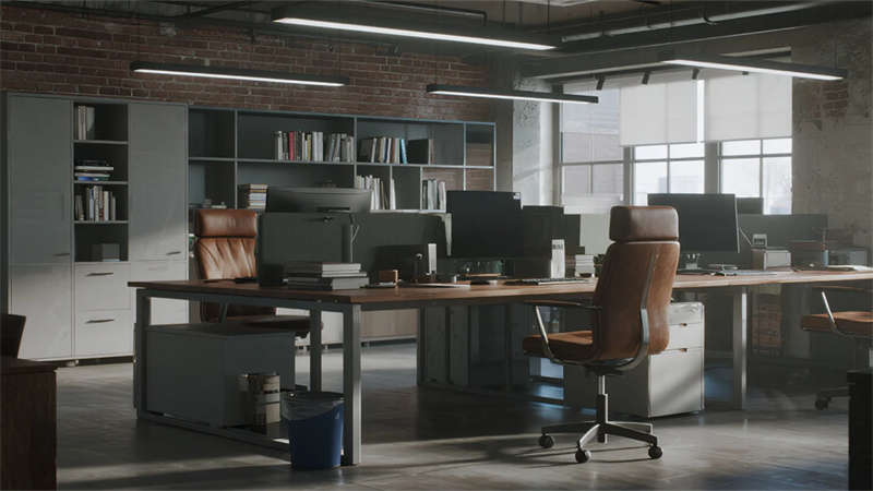 這組工業(yè)風辦公室設(shè)計以裸露結(jié)構(gòu)和復古質(zhì)感為核心,通過混凝土、金屬和木質(zhì)材料的碰撞,打造出兼具實用性與藝術(shù)感的辦公空間??臻g保留了建筑的原始肌理,如天花板的管線和墻面的磚紋,搭配黑色鐵藝家具和深色調(diào)軟裝,營造出冷峻而富有張力的氛圍。局部通過皮質(zhì)沙發(fā)、綠植和暖光燈具軟化工業(yè)風的硬朗感,增添人文氣息。