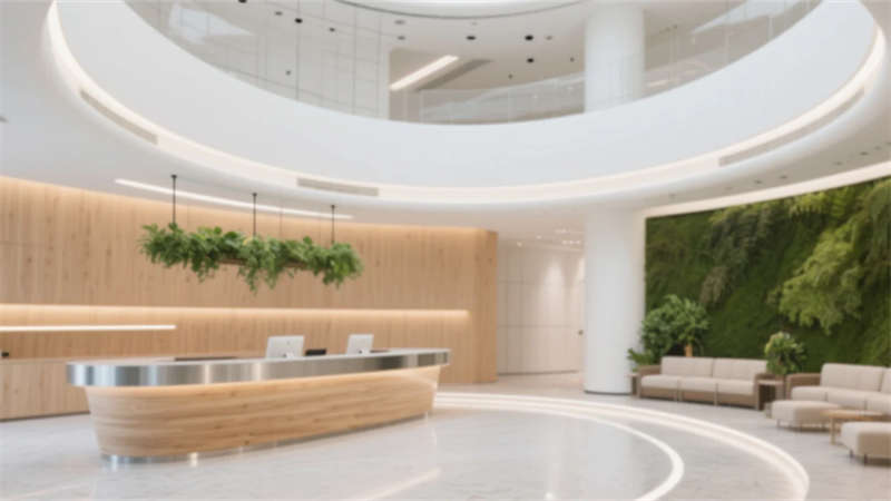 生態(tài)科技體系覆蓋全場景:經(jīng)理辦公室苔蘚墻集成空氣監(jiān)測系統(tǒng),總裁室霧化玻璃聯(lián)動(dòng)光伏發(fā)電,小會議室綠植墻搭載微滴灌節(jié)水裝置。材質(zhì)選用安徽本土元素升級再造,大廳水磨石摻入大別山礦石粉,定制地毯紋樣提取徽派窗欞數(shù)字化變體。