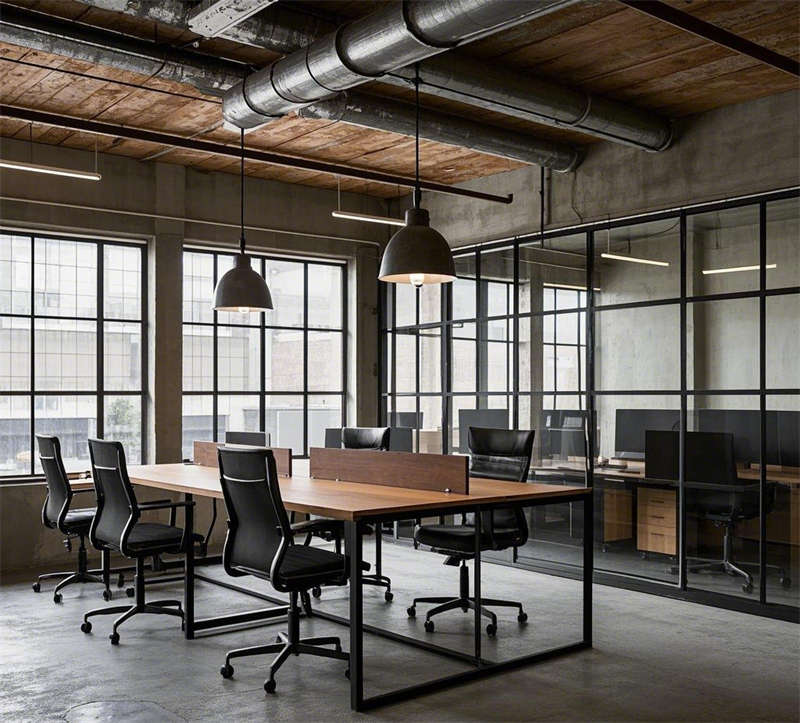 這間2500平方米的工業(yè)風(fēng)格辦公室以粗獷與精致并存的設(shè)計理念為核心,融合了裸露的水泥墻面、金屬框架和復(fù)古燈具等經(jīng)典元素,營造出獨特的現(xiàn)代工業(yè)氛圍。