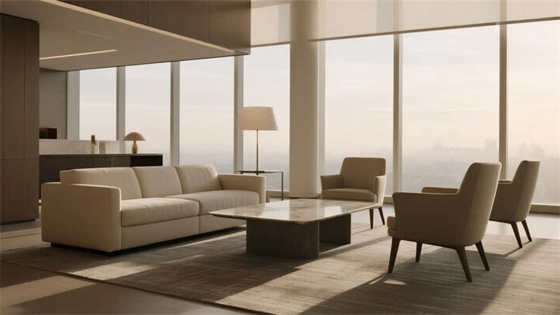 空間布局開闊通透,巨大的落地窗將自然光引入室內(nèi),與精心設(shè)計(jì)的隱藏式燈光系統(tǒng)共同營造出溫暖而富有層次的光影氛圍。從大堂的恢弘大氣到客房的靜謐溫馨,每一處細(xì)節(jié)都旨在為旅客提供一種沉浸式的、回歸本真的休憩體驗(yàn)。整體設(shè)計(jì)強(qiáng)調(diào)人與空間的情感連接,在簡約中蘊(yùn)含深度,于現(xiàn)代中流露溫潤,成就了一處城市中可呼吸、可感知的詩意棲居地。