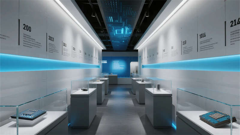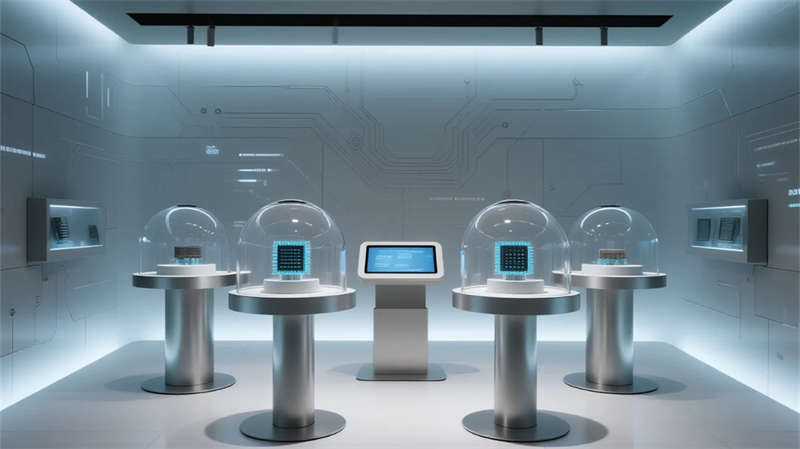 該半導(dǎo)體企業(yè)展廳以現(xiàn)代簡約風(fēng)格為核心,通過流暢空間布局與高科技元素,打造沉浸式科技體驗(yàn)。設(shè)計(jì)突出半導(dǎo)體技術(shù)的抽象表達(dá),利用藍(lán)色與灰色調(diào)營造冷靜、專業(yè)的氛圍,同時(shí)融入玻璃、金屬材質(zhì)增強(qiáng)通透感。入口區(qū)以懸浮雕塑引導(dǎo)視線,產(chǎn)品展示區(qū)通過簡約玻璃柜和觸屏互動,生動呈現(xiàn)技術(shù)精髓;技術(shù)創(chuàng)新墻以動態(tài)圖文展現(xiàn)工藝演進(jìn),歷史廊道則以線性敘事喚起行業(yè)記憶?;訁^(qū)和未來展望區(qū)強(qiáng)調(diào)參與性,采用環(huán)形屏幕與全息投影,讓訪客直觀感受創(chuàng)新應(yīng)用。休息區(qū)與演講區(qū)注重人性化,簡約家具結(jié)合微光紋理,提供舒適交流空間。整體設(shè)計(jì)摒棄繁復(fù)裝飾,以干凈線條和光影變化強(qiáng)化空間流動性,不僅傳遞半導(dǎo)體領(lǐng)域的精密與前瞻性,更通過美學(xué)融合提升教育性和觀賞性。展廳作為科技展示平臺,旨在激發(fā)探索興趣,體現(xiàn)企業(yè)對創(chuàng)新文化的重視。